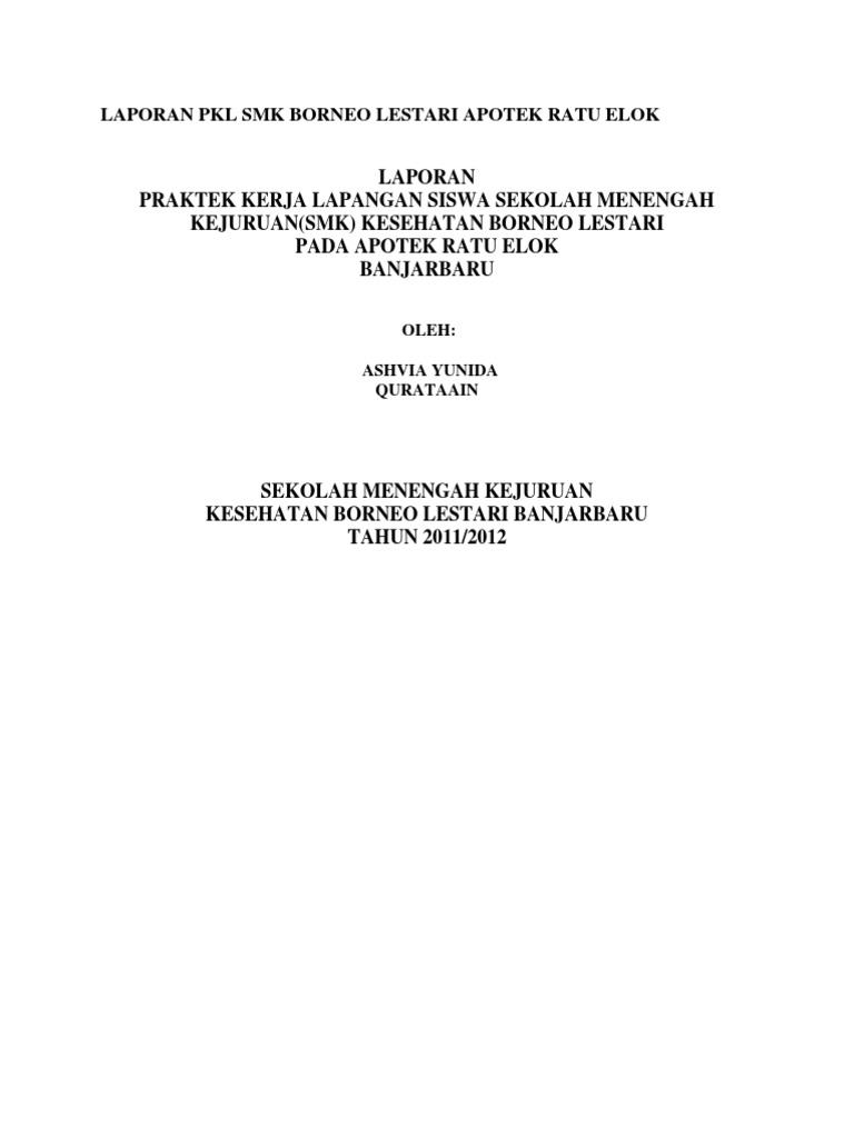 Dalam membuat laporan pkl di apotek. Contoh laporan prakerin smk farmasi laporan praktek kerja industri.