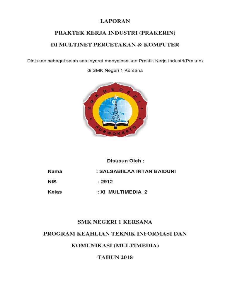 Laporan prakerin sifatnya adalah wajib jadi siswa harus mengumpulkan laporan prakerin sebagai bukti pertanggung jawaban ilmu apa saja yang sudah didapatkan semasa pkl. Muhamad nursidik nis. Praktek kerja industri. Contoh laporan prakerin smk multimedia 1. Contoh laporan prakerin smk sunan drajat lamongan. Contoh laporan pkl smk salah satu tugas yang harus dijalani anak magang selain membuat proposal magang adalah membuat laporan setelah selesai menjalani kegiatan tersebut.