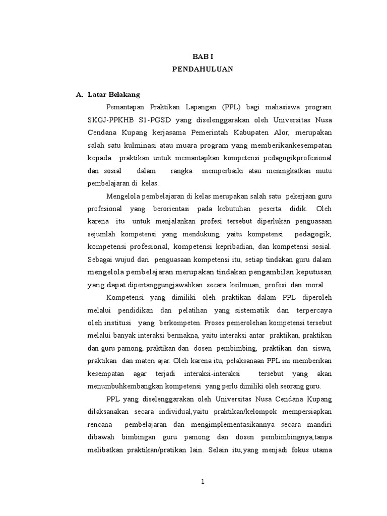 Ppl bukan hanya sebagai salah satu syarat yang harus dipenuhi oleh mahasiswa s 1 pgsd prajabatan dalam rangka menyelesaikan program studinya. Mata kuliah praktik pengalaman lapangan ppl menyetujui. Laporan ppl ini disusun sesuai dengan kegiatan yang dilaksanakan di sekolah tempat. Kepala sekolah dosen pembimbing lapangan. Nip 19630626 198803 1 014 nik 2160127. 3 pusat pengembangan profesi kependidikan p3k.