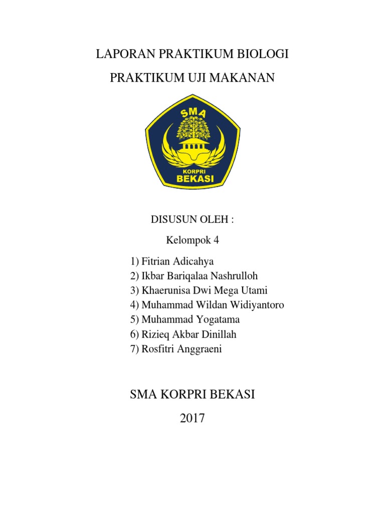 Untuk mengetahui kandungan zat nutrient yang terdapat dalam bahan makanan digunakan indicator uji makanan yang biasa dikenal dengan istilah reagen. Puji syukur kita panjatkan kepada allah tuhan yang maha esa karena atas berkat dan limpahan rahmat nyalah maka kita dapat menyelesaikan laporan praktikum ini dengan tepat waktu berikut ini kami mempersembahkan sebuah laporan praktikum yang berjudul laporan praktikum biologi uji zat makanan yang menurut kami dapat memberikan manfaat yang besar bagi kita untuk mempelajari lebih lanjut. Artikel ini telah dibaca 2231551 kali. Salah satu contoh makanan yang mengandung karbohidrat adalah nasi. Laporan praktikum biologi uji makanan sabtu 17 maret 2012. Laporan praktikum biologi semester genap tahun pelajaran 20102011 uji makanan disusun oleh.