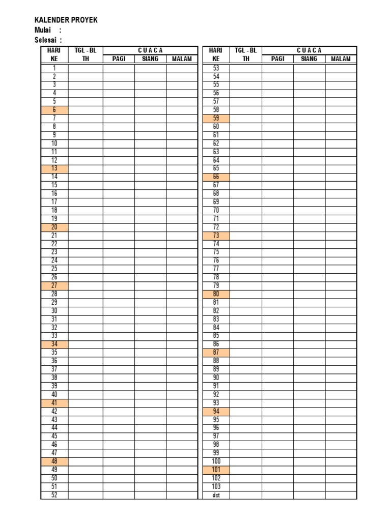 Laporan harian mingguan dan bulanan proyek menjadi salah satu syarat administrasi teknis yang harus dibuat oleh kontraktor pelaksana pekerjaan proyek. Contoh format excel laporan bulanan mingguan harian dan jadwal pelaksanaan untuk konsultan pengawas laporan pengawasan sangat penting untuk mengetahui progress di lapangan.