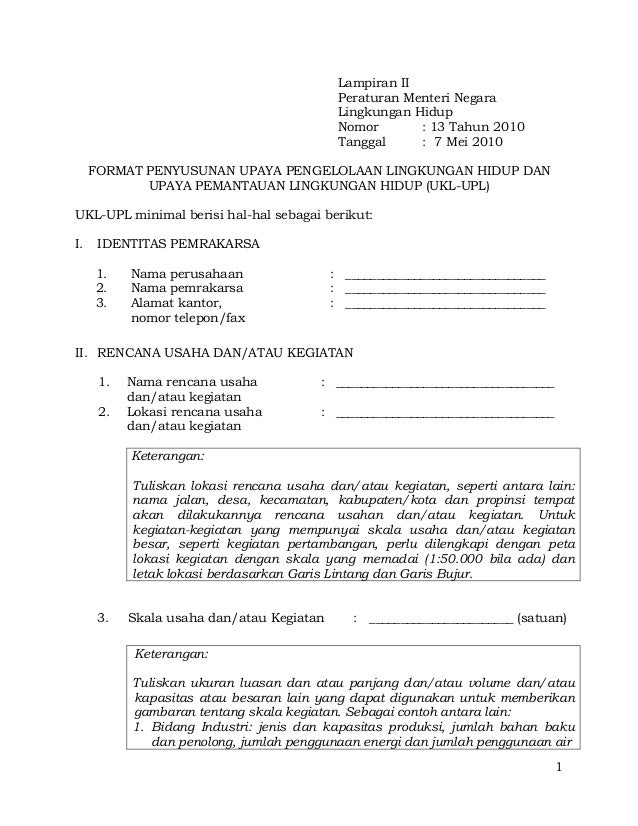 Isi dan sesuaikan formulir di atas dengan kegiatan industriusaha eksisting yang ada. Kegiatan industri contoh. File file contoh ukl upl di blog ini dapat langsung di download di bagian bawah blog ini saat ini juga tentunya. Istilah ini biasanya diterapkan untuk pembangkit listrik atau pabrik kimia seperti. Uji laboratorium untuk kualitas air tanahsumur air sungai dapat menggunakan laboratorium yang sudah terakreditasi. Dokumentips contoh format laporan semester ukl upl 1.