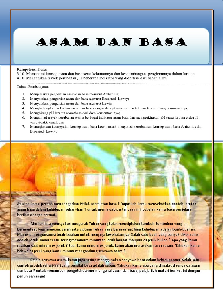 Contoh larutan asam dan basa. Yakni basa yang hanya sebagian molekulnya yang terurai menjadi ion oh. Pengertian sifat asam dan basa oke pada kesempatan siang hari ini kita punya akan berbagi mengenai asam dan basauntuk yang garam postingan selanjutnya aja ya he he. Pengertian asam basa garam ciri sifat indikator gambar dan contoh. Basa adalah senyawa kimia yang menyerap ion hidronium ketika dilarutkan dalam air. Asam adalah senyawa kimia yang bila dilarutkan dalam air akan menghasilkan larutan dengan ph lebih kecil dari 7basa adalah senyawa kimia yang menyerap ion hidronium ketika dilarutkan dalam air. Sebagai contoh adalah nh4cl garam ini terbentuk dari hasil reaksi netralisasi antara nh3 dan hcl dan di dalam air terinonisasi sempurna menghasilkan ion nh4 dan cl.