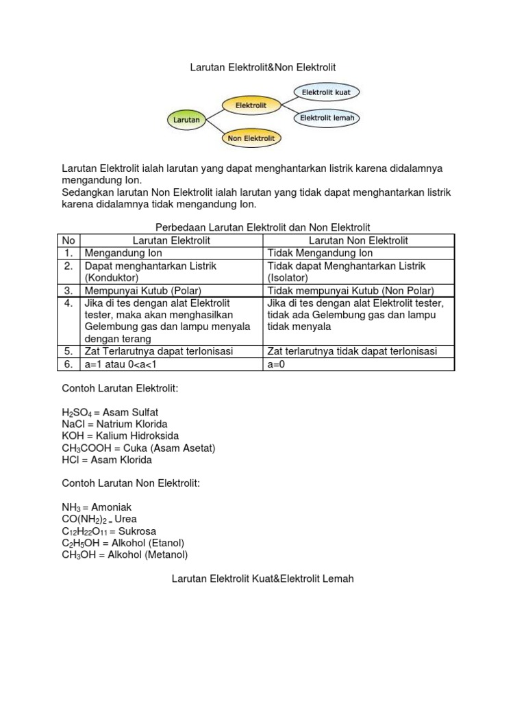 Tutorial materi pembelajaran kimia kita kali ini adalah berkenaan dengan contoh contoh dari larutan elektrolit kuat larutan elektrolit lemah dan larutan non elektrolit. Larutan yang termasuk elektrolit kuat elektrolit lemah dan non elektrolit. Basa lemah nh4oh aloh3 dan juga feoh3. Larutan adalah campuran homogen dua zat atau lebih yang saling melarutkan diri dan masing masing zat penyusunnya tidak dapat diedakan lagi secara fisik. Contoh larutan elektrolit lemah yaitu senyawa senyawa asam lemah dan basa lemah seperti h 2 c 2 o 4 ch 3 cooh n 2 h 4 dan nh 3. Asam lemah hcn h3po4 ch3cooh dan c2o3 basa lemah nh4oh aloh3 dan feoh3.