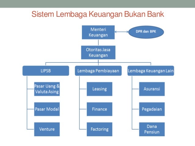 Berdasarkan uu ri no. 15 contoh lembaga keuangan bank dan bukan bank serta fungsi dan tujuannya by maruf posted on contoh lembaga keuangan lembaga keuangan adalah suatu lembaga yang aktivitas sehari harinya menlayani jasa di bidang keuangan yaitu sebagai perantara intermediasi dari pihak yang mempunyai dana surplus kepada pihak yang defisit dana baik sektor rumah tangga pemerintah maupun swasta. 10 tahun 1998 yaitu suatu badan usaha yang melakukan suatu kegiatan di bidang keuangan yang menghimpun dana dengan mengeluarkan kertas berharga dan untuk menyalurkannya untuk membayar investasi perusahaan. Contoh dari lembaga keuangan jenis ini adalah polis asuransi dan pengolahan dana pensiun. Contoh lembaga keuangan bukan bank adapun beberapa contoh lembaga keuangan bukan bank yang terdapat dalam masyarakat antara lain adalah perusahaan perasuransian koperasi kredit perusahaan umum pegadaian dana pensiun dan perusahaan sewa guna. Apa yang dimaksud dengan lembaga keuangan bank.