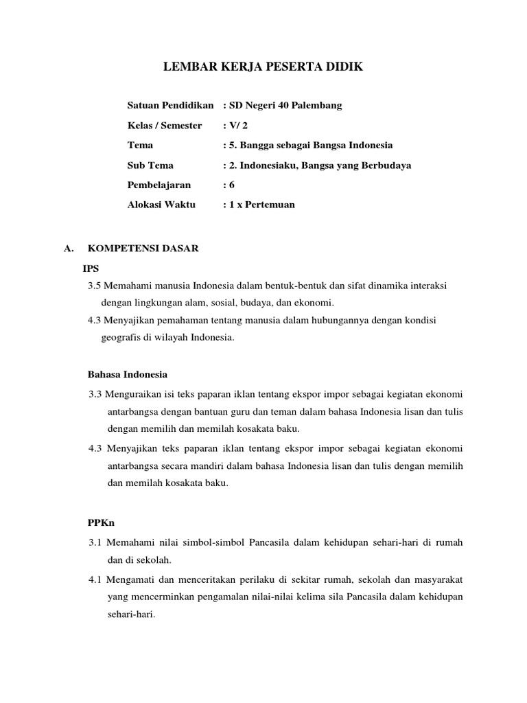 Contoh lembar kerja peserta didik. Lks biasanya berupa petunjuk langkah untuk menyelesaikan suatu tugas suatu tugas yang diperintahkan dalam lembar kegiatan harus jelas kompetensi dasar yang akan dicapainya. Seorang guru dalam memberikan tugas kepada peserta didiknya memerlukan lembar petunjuk kerja yang disebut lembar kerja peserta didik. Lembar kerja peserta didik lkpd sebagai salah satu bentuk sarana berlangsungnya proses belajar mengajar haruslah memenuhi persyaratan didaktik artinya suatu lkpd harus mengikuti asas belajar mengajar yang efektif yaitu. Lembar kerja peserta didik lkpd. Pengertian lembar kerja siswa lks lembar kerja siswa lks adalah lembaran yang berisi tugas yang harus dikerjakan oleh peserta didik. Pengembangan lembar kerja peserta didik lkpd pendahuluan pada kurikulum 2013 semua mata pelajaran harus berkontribusi terhadap pembentukan sikap keterampilan dan pengetahuan.