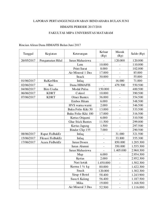 Laporan Pertanggungjawaban Lpj Contoh Bendahara Amp Formatnya