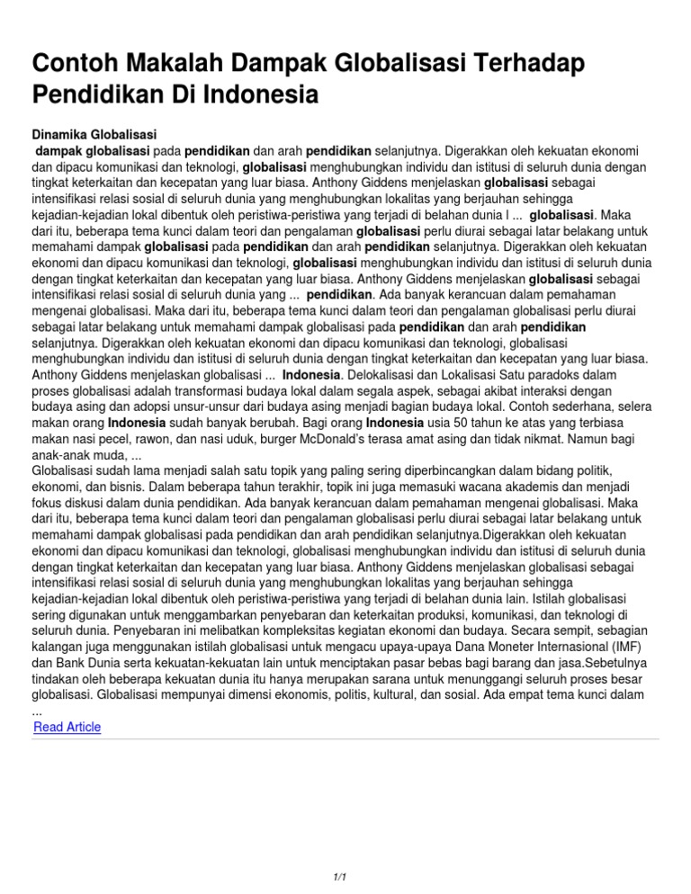 Contoh makalah tentang globalisasi saat ini anda yang lagi mecari makalah bertema globalisasi maka kamu bisa melihat disini dimana kamu disini akan tahu tentang makalah tentang globalisasi sehingga anda yang lagi membuat tugas sekolah untuk membuat makalah yang baik dan benar sesuai dengan kebutuhan yang diharapkan oleh dosen atau guru pembingbing anda maka anda harus tahu format saat. Lebih dan kurang saya mohon maaf. Dalam banyak hal globalisasi mempunyai banyak. Dan tentunya makalah ini masih sangat jauh dari sempurna. Segala puji dan syukur kami panjatkan kekhadirat allah swt tuhan yang telah memberikan beragam nikmat nya kepada kita semua sehingga alhamdulillah kami diberikan kelancaran dalam membuat makalah yang berjudul proses aspek dan dampak globalisasi dalam kehidupan berbangsa dan bernegarasalawat dan salam semoga selamanya tercurah dan terlimpah kepada nabi muhammad saw keluarganya para. Pengertian politiknamun secara umum contoh globalisasi dibidang politik adalah sebagai berikut.