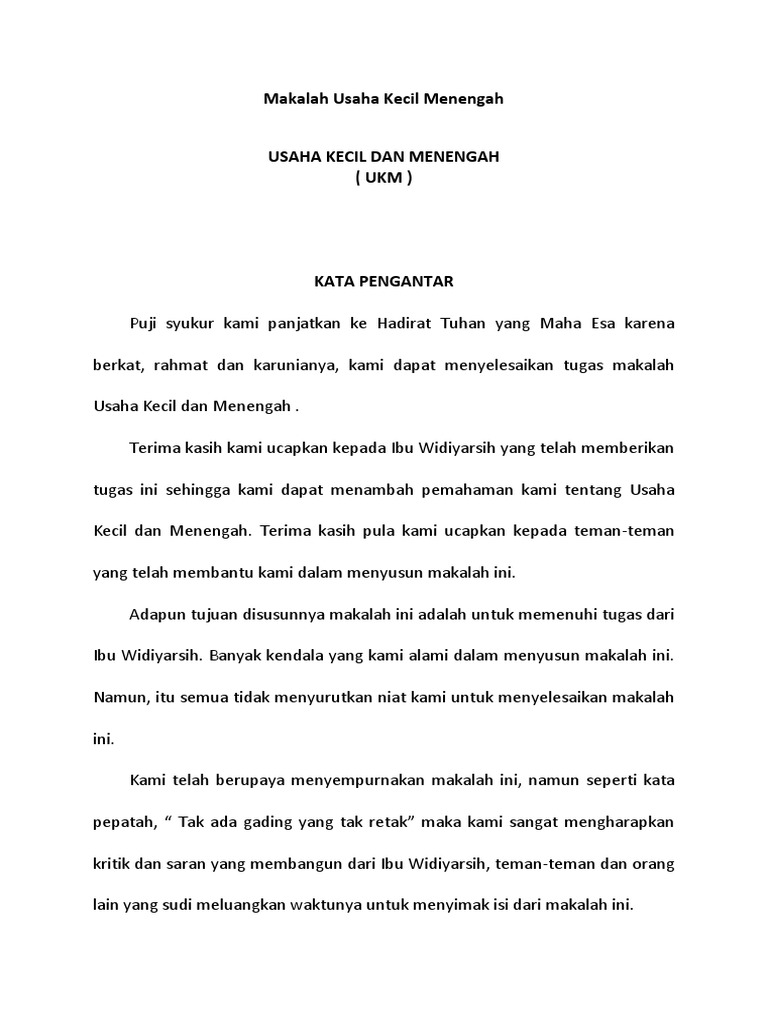 Contoh makalah usaha kecil menengah. Nama usaha yang akan kami buat sangat diperlukan karena agar mudah diingat oleh setiap konsumen yang membeli produk kitauntuk usaha ini kami memberikan nama nurii puding yang kami ambil dari singkatan nama tim pelaku bisnis kami. Usaha kecil menengah ukm yang ada di negara kita ini menyumbang sekitar 60 dari pdb product domestic bruto dan juga memberikan kesempatan kerja pada banyak masyarakat kita. Ukm usaha kecil menengah memegang peranan yang sangat besar dalam memajukan perekonomian indonesia. Dan usaha yang berdiri sendiri. Dan contoh makalah usaha makanan usaha kecil menengah ini mudah mudahan bisa menjawab. Selain sebagai salah satu alternatif lapangan kerja baruukm juga berperan dalam mendorong laju pertumbuhan ekonomi pasca krisis moneter tahun 1997 di saat perusahaan perusahaan besar mengalami kesulitan dalam mengembangkan usahanya.