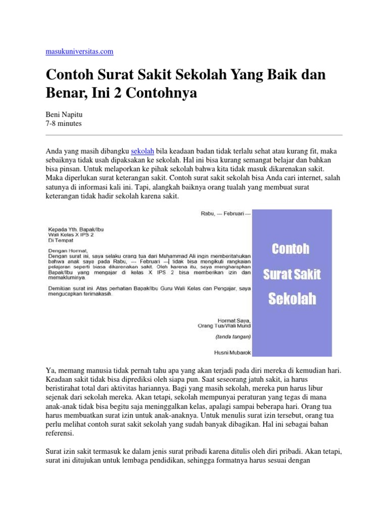 Contoh membuat surat tidak masuk sekolah. Surat izin tidak masuk sekolah biasanya dibuat oleh siswa yang sedang berhalangan untuk masuk sekolah. Contoh surat izin sakit tidak masuk sekolah sakit memang sebuah kendala yang tak bisa diatur oleh manusia. Contoh surat izin tidak masuk sekolah karena sakit adakalanya kita atau anak kita tidak dapat masuk sekolah karena sedang sakit. Namun sebagai seorang siswa kamu juga tidak bisa memandang rendah pendidikan dan tidak masuk sekolah begitu saja. Meskipun sudah berusaha sebaik mungkin untuk menjaga kesehatan namun jika sudah tiba saatnya tetap saja penyakit akan datang menghampiri. Contoh surat izin sakit pembahasan materi kali ini adalah mengenai cara membuat dan contoh surat izin sakit tidak masuk sekolah kerja dan kuliah.