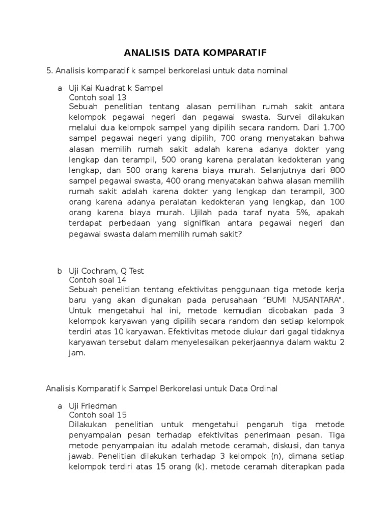 Contoh analisis data kualitatif akan membutuhkan waktu lebih lama daripada contoh analisis data kuantitatif. Teknik analisis data kualitatif yang akan dipaparkan di sini menggunakan teknik umum yang sudah disederhanakan dari metode yang ditulis oleh pakar riset sosial alan bryman. Jenis metode penelitian setelah metode deskripsi adalah metode korelasional. Metode analisis data yang diterapkan dalam proses penelitian ditentukan oleh metode penelitian yang digunakan. Pada penulisan teknik pengumpulan data biasa diletakan dalam bab 3 dalam sebuah karya ilmiah baik itu skripsi karya tulis ilmiah thesis ataupun laporan penelitian. Maka hasil dari interpretasi yang diperoleh pun tidak sempurna bahkan dapat berakibat fatal.