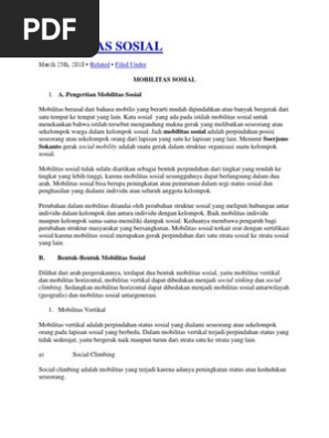 Pengertian gerak vertikal ke atas ciri rumus dan contoh soal gerak vertikal ke atas beserta pembahasannya lengkap gerak vertikal ke atas gva adalah salah satu bentuk gerak lurus yang termasuk dalam gerak lurus berubah beraturan glbb dimana pergerakan benda dimulai dengan kecepatan awal dan lintasan pergerakan benda vertikal ke atas. Mobilitas sosial vertikal adalah perpindahan individu atau objek objek sosial dari suatu kedudukan sosial tertentu ke kedudukan sosial lainnya yang tidak sederajat. Seperti kita ketahui mobilitas vertikal berdasarkan jenisnya dibagi menjadi 2 yaitu mobilitas verikal ke atas dan mobilitas vertikal ke bawah namun dalam pembabahasan kali ini kita hanya akan mengupas lebih dalam mengenai mobilitas vertikal ke bawah. Sesuai dengan arahnya maka terdapat dua jenis mobilitas yaitu mobilitas sosial vertikal ke atas social climbing dan mobilitas sosial vertikal kebawah social sinking. Gerak social yang dialami oleh pak zaenuri juga merupakan contoh bentuk mobilitas social horizontal. Sesuai dengan arahnya mobilitas sosial vertikal dapat dibagi menjadi dua mobilitas vertikal ke atas social climbing dan mobilitas sosial vertikal ke bawah social sinking.