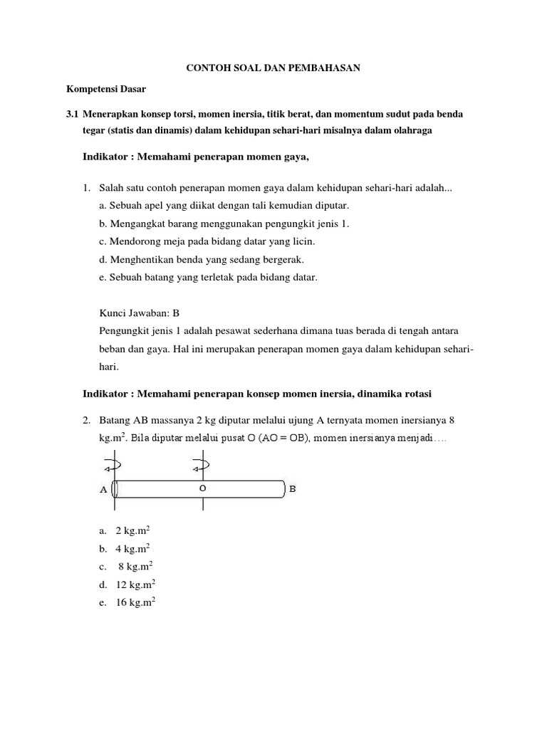 Momen Inersia Pengertian Rumus Penerapan Soal