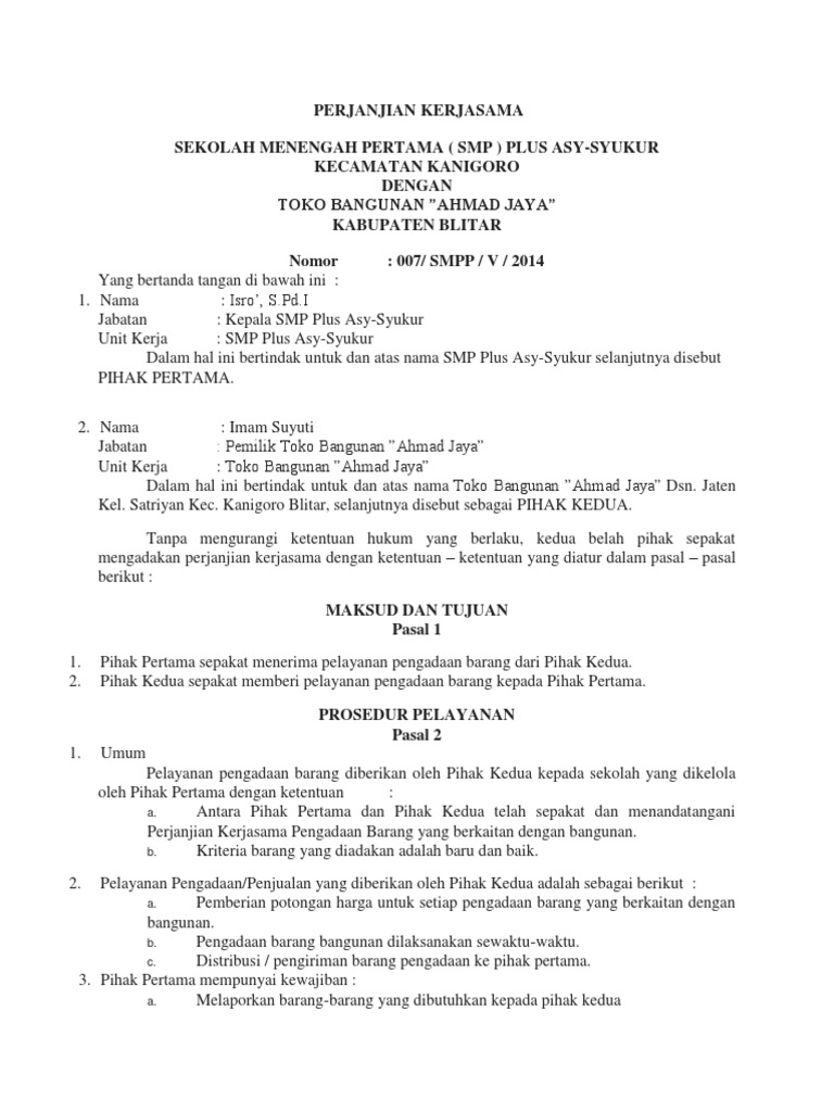 5 contoh mou kerjasama perusahaan perjanjian kerja perjanjian memang sangat diperlukan untuk mengetahui apa saja hal hal yang membatasi kedua belah pihak yang berjanji dan salah satu cara untuk mengetahui hal tersebut adalah dengan membuat contoh mou kerjasama karena di dalamnya akan menjelaskan apa saja poin poin kesepakatan yang dibuat. Contoh surat perjanjian mou antar perusahaan. Contoh mou diatas berisikan kesepakatan sekolah dengan perusahaan dalam penyediaan tenaga kerja. Namun jika anda ingin lebih mudah maka anda pun bisa mengcopy langsung contoh surat perjanjian kerjasama di bawah ini. Muhammad lutfi aji arya putra s. Contoh perjanjian kerjasama usaha mou agar kamu lebih mudah memahami serta dapat membuat surat perjanjian usaha sesuai dengan kebutuhannya kami menyediakan contoh mou di bawah ini.