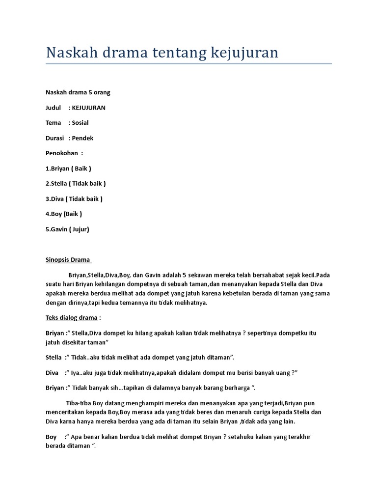 Contoh naskah drama tentang pendidikan untuk 5 orang adalah. As we know there are a lot of bahwasannya language that can be used in preparing a play and one of them is english.