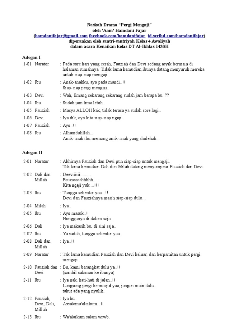 14 contoh naskah drama. Nah kali ini saya akan melanjutkan pembahasan sebelumnya yang pastinya saling berkaitan. Karya karyanya selalu mengisi mading sekolah dan dimuat di beberapa koran dan majalah. Contoh naskah drama 5 orang belajar dan mencontek judul. Siswa 1 berjalan disekitar panggung. Contoh naskah drama musikal sembilan orang sumber.