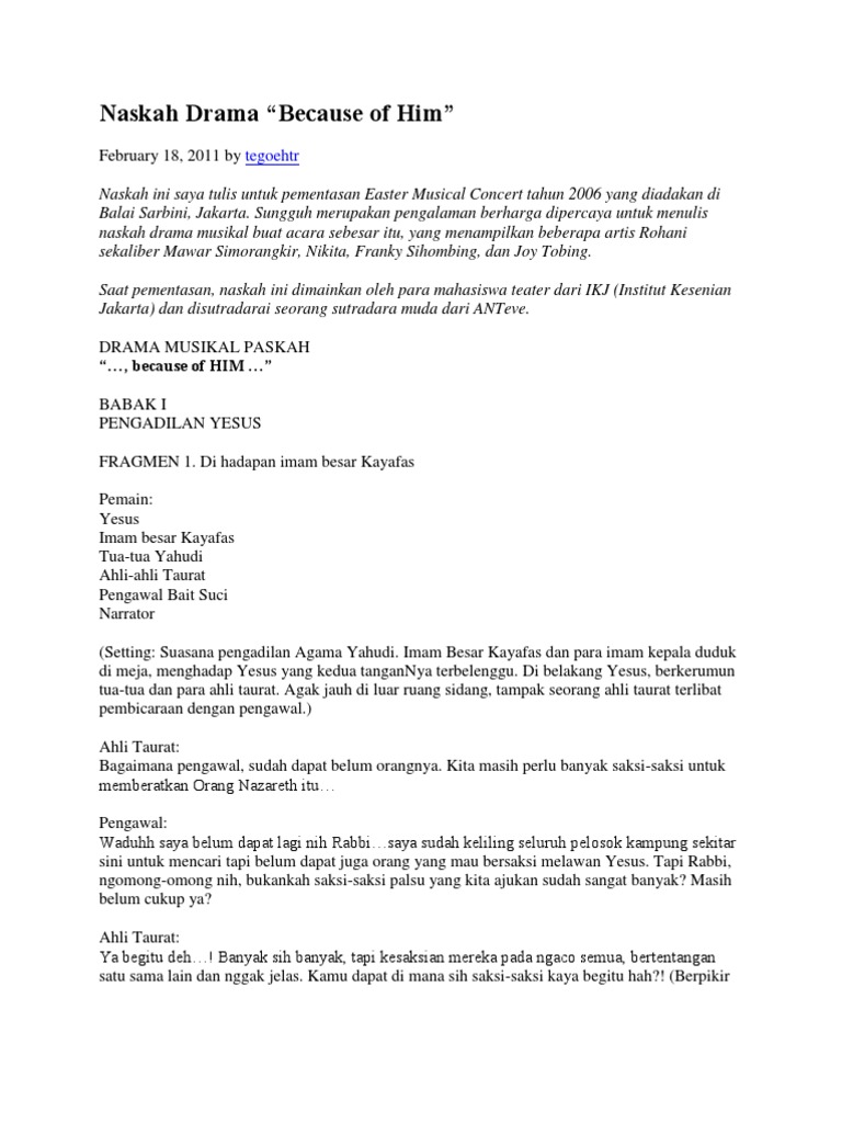 Drama musikal berupa pertunjukan dialog yang diiringi oleh music dan nyanyian merdu para pemain atau para tokohnya. Bagai tetesan embun pagi yang jatuh membasahi kegersangan hati hingga mampu menyejukan taman sanubari. Hallo sobat santaidamai gimana kabarnya. Ulangan semester kelas x bahasa jawa kunci jawaban cara penilainan. Contoh naskah drama musikal sembilan orang rana merupakan salah satu siswi sebuah sma yang sangat berbakatdibidang seni musik dan sastra. Tapi jangan khawatir.