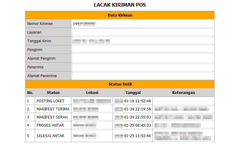 Perhatikan panah hitam untuk mengetahui letak nomor resi untuk masing masing kurir ekspedisi. Saat ini pos indonesia memiliki jaringan yang tersebar di 24 ribu titik layanan yang menjangkau 100 persen kotakabupaten hampir 100 persen kecamatan serta 42 persen kelurahandesa dan 940 lokasi transmigrasi terpencil di seluruh indonesia. Mendukung kemudahan akses finansial pos indonesia memiliki sekitar 24 ribu titik layanan yang menjangkau hampir di semua kecamatan dan kelurahandesa hingga ke lokasi terpencil di indonesia. Nomor resi adalah kode yang pada umumnya berjumlah beberapa digit untuk melacak status dari barang yang dikirim. Secara umum nomor resi terdiri dari deretan angka tertentu atau merupakan gabungan antara angka dan huruf. Resi kode pelacakan kiriman pt.