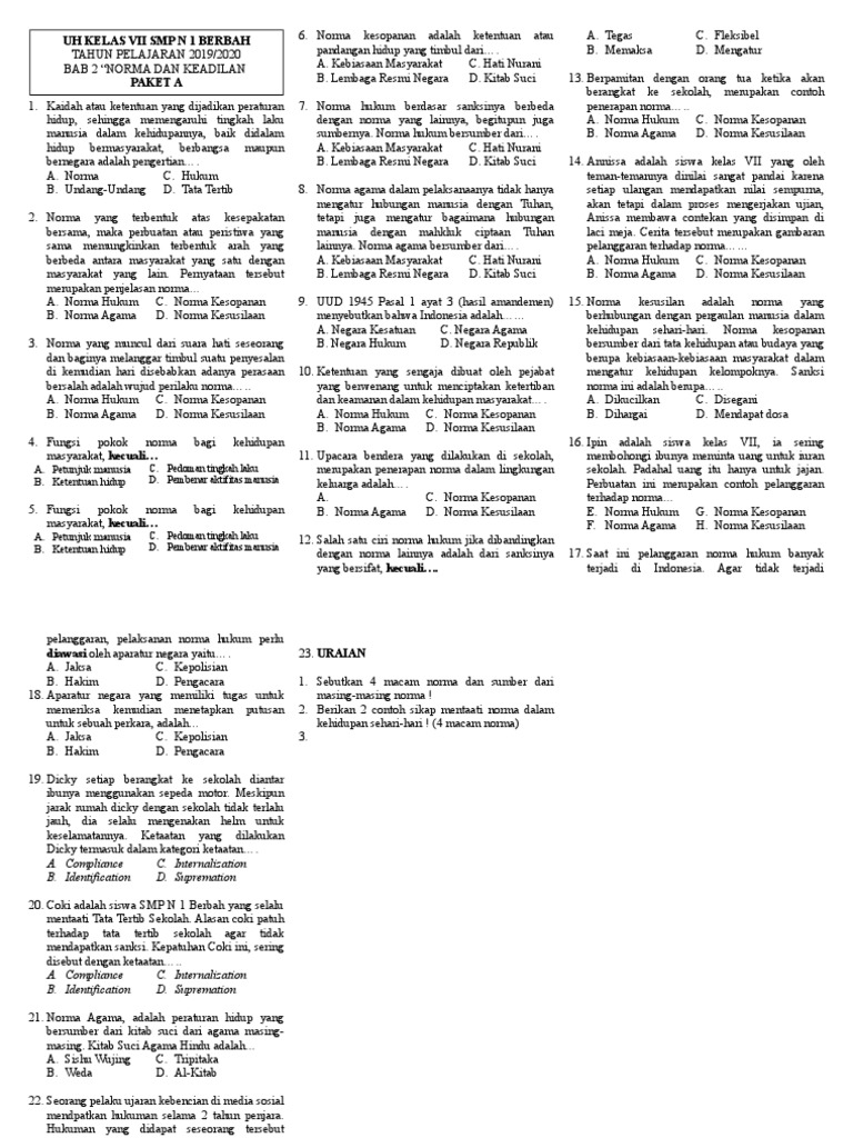 Lalu apakah kalian mengetahui apa yang dimakasud dengan norma kesopanan. Dalam norma agama diwajibkan untuk menjunjung tinggi nilai nilai kemanusiaan dan keimanan dalam. Norma agama bersumber dari tuhan yang dimuat dalam kitab suci agama tertentu. Norma agama merupakan unit terkecil di struktur sosial dalam masyarakat yang dapat memudahkan sebuah proses sosial dalam masyarakat itu sendiri. Pendidikan yang diajarkan sejak dini akan lebih diingat oleh seseorang. Norma merupakan sebuah aturan bayangkan saja jika disekitar kita tidak ada norma pasti semua akan hancur berantakan tidak karuan bahkan dapat menimbulkan perpecahan.