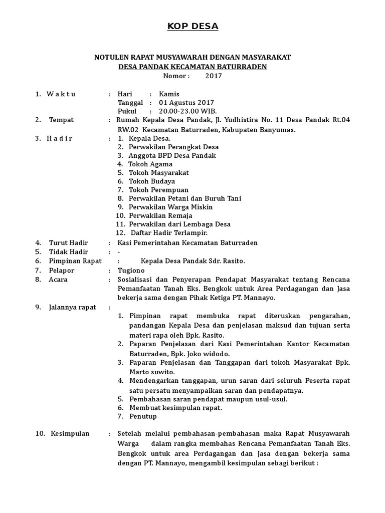 Contoh notulensi musyawarah desa bpk. Untuk sobat desa yang mau download file contoh berita acara blt dana desa tersebut silahkan gulir atau cek di bagian bawah artikel ini.