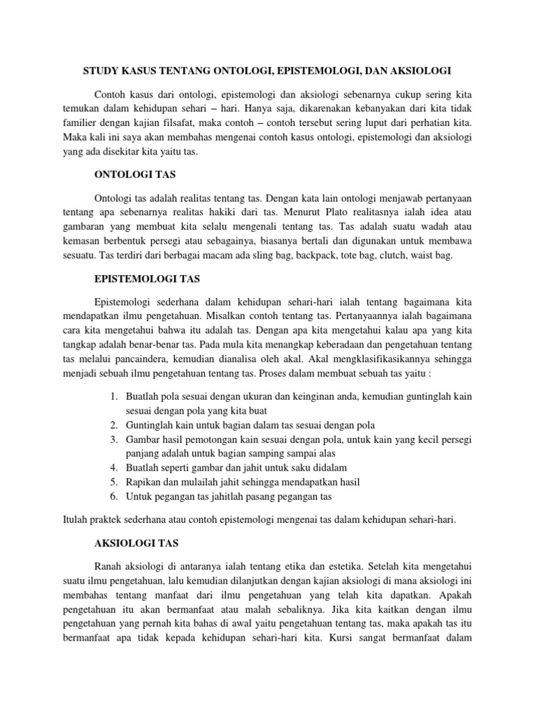 Contoh kasus ontologi epistemologi dan aksiologi.