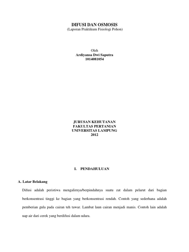 Larutan memiliki 3 molekul protein albumin berat molekul 66000 dan larutan b memiliki 15 molekul glukosa berat molekul 180. Dua kontainer a dan b diisi dengan volume yang sama dari air dan dipisahkan oleh membran yang memungkinkan air untuk lulus bebas tetapi melarang lewatnya molekul zat terlarut. Perbedaan difusi dan osmosis didalam istilah ilmiah difusi dan osmosis sering diartikan sebagai sebuah proses yang berperan dalam mengirim atau memindahkan unsur material dari satu posisi ke posisi lainnya. Pada osmosis terbalik tekanan atmosferik dan volumetric yang naik akan mendorong partikel zat terlarut yang lebiih tinggi melewati mebran mengatasi celah yang mungkin terjadi ketika tekanan osmotic tidak memungkinkan terjadinya difusi melalui membra. Pada kesempatan kali ini kita akan membahas makalah tentang difusi dan osmosis. Contoh fungsi tabel dibahas dengan jelas disini semoga bermanfaat.