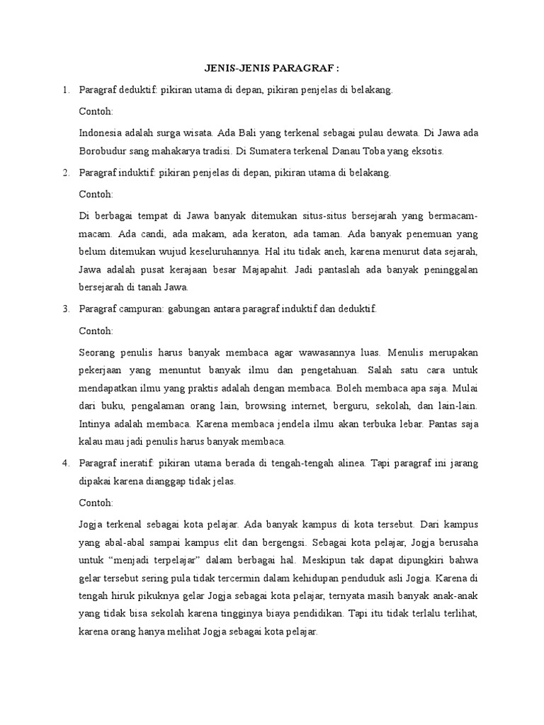 Tidak hanya contohnya saja yang akan kita sajikan melainkan juga pengertian ciri ciri dan jenis dari 3 paragraf ini. Paragraf memiliki jenis yang beragam kali ini kita akan membahas paragraf dilihat dari letak kalimat utamanya. Contoh paragraf deduktif induktif dan campuran paragraf menentukan runut tidaknya dan sistematisnya suatu tulisan. Untuk lebih mudah memahaminya yuk kita simak bersama sama tentang penjelasan paragraf campuran dibawah ini. Pengertian paragraf deduktif induktif dan campuran paragraf merupakan rangkaian kalimat yang membentuk satu gagasan pokok. Contoh paragraf deduktif induktif dan campuran 17 mei 2020 14 mei 2020 oleh bagus al menurut letak gagasan utamanya paragraf terbagi menjadi 3 yaitu paragraf deduktif induktif dan campuran.