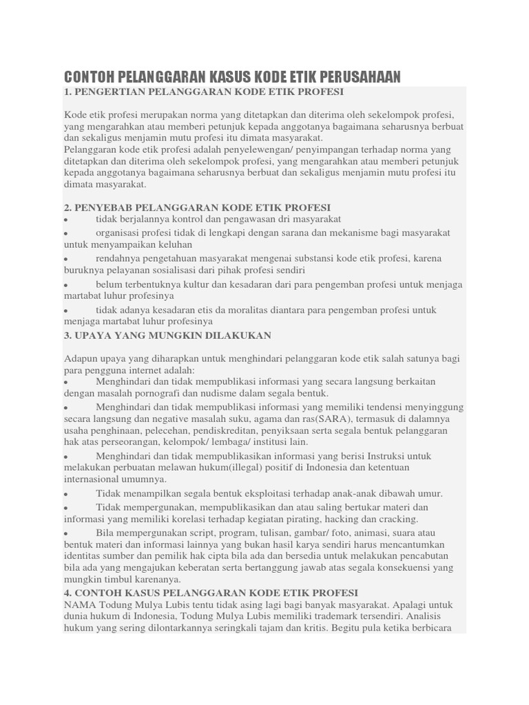 Contoh kasus pelanggaran pelanggaran kode etik yang sering terjadi. Penilaian akhir atas pelanggaran kode etik jurnalistik dilakukan dewan pers. Berikut ini adalah beberapa contoh penyimpangan kode etik jurnalistik yang sering terjadi di masyarakat. Dewan pers menyatakan merdekanewsco terbukti melakukan pelanggaran kode etik jurnalistik serta melanggar pedoman pemberitaan media siber dalam berita jejak aguan dan tommy winata di partai solidaritas indonesia yang terbit pada 28 februari 2018. Hal tersebut tentunya dipengaruhi oleh tingkat kesulitan di dalam memberikan didikan kepada anak terutama yang memiliki sifat cukup bandel. Pelanggaran kode etik jurnalistik semua berita foto infografis video.