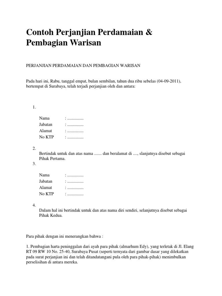 Format contoh surat pembagian warisan rumah yang benar 2019. Contoh soal pembagian harta warisan dan cara perhitungannya seorang laki laki wafat dan meninggalkan warisan uang sebesar rp. Contoh surat keterangan kesepakatan para ahli waris atas pembagian harta warisan dari harta yang meninggalkan ayah. Contoh surat pembagian warisan rumah have a graphic from the othercontoh surat pembagian warisan rumah in addition it will include a picture of a sort that could be seen in the gallery of contoh surat pembagian warisan rumah. Dalam masalah pembagian harta waris terdapat beberapa kasus yang tergolong biasa dan tergolong khusus untuk kasus pembagian waris yang tergolong biasa tidak begitu rumit menghitungnya dikarenakan harta waris tidak ada yang tersisa atau pun kurang sebaliknya dengan kasus khusus sesuai namanya perlu pertimbangan dan kondisi khusus yang menyebabkan permbagian harta waris berbeda dengan kasus biasa.