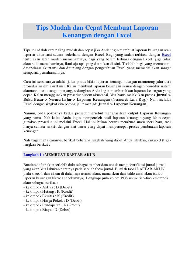 Cara Membuat Laporan Keuangan Sederhana Di Excel Dua Rupa