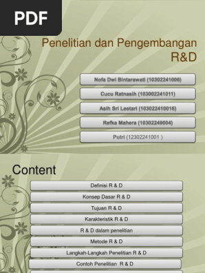 Contoh penelitian r d. Prosedur penelitian biasanya bersifat linear. Setiap langkah dalam penelitian rd harus dilaksanakan secara berurutan agar menghasilkan produk yang benar benar valid. Sasaran penelitian untuk 1 sasaran penelitian untuk menemukan pengetahuan baru atau memecahkan lh kh. Rd merupakan penelitian yang biasanya digunakan peneliti untuk melakukan pengembangan suatu produkjadi banyak para peneliti menggunakan metode penelitian rd untuk mencipta suatu produk tertentu seperti model pembelajaran metode media pembelajaran. Langkah langkah dari proses ini biasanya disebut sebagai siklus r d yang terdiri dari mempelajari temuan penelitian yang berkaitan dengan produk yang akan dikembangkan mengembangkan produk berdasarkan temuan ini bidang pengujian dalam pengaturan di mana ia. Bagi peneliti untuk menambah wawasan tentang rd research depelovment dan proses penyelesaian tugas pada mata kuliah rd research depelovment.
