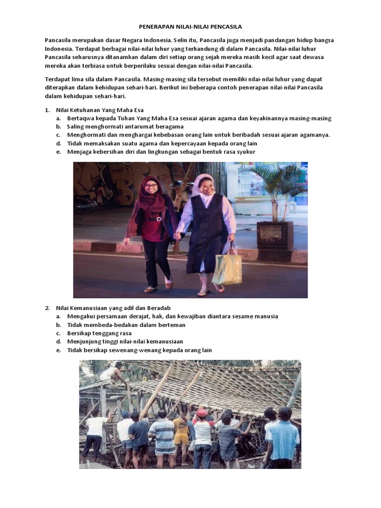 Sikap nilai nilai pancasila pada kehidupan sehari hari sikap nilai nilai pancasila pada kehidupan sehari hari berikut ini beberapa contoh sikap positif yang sesuai dengan nilai pancasila dalam kehidupan sehari hari. Sikap yang sesuai dengan sila pertama sila pertama pancasila berbunyi.