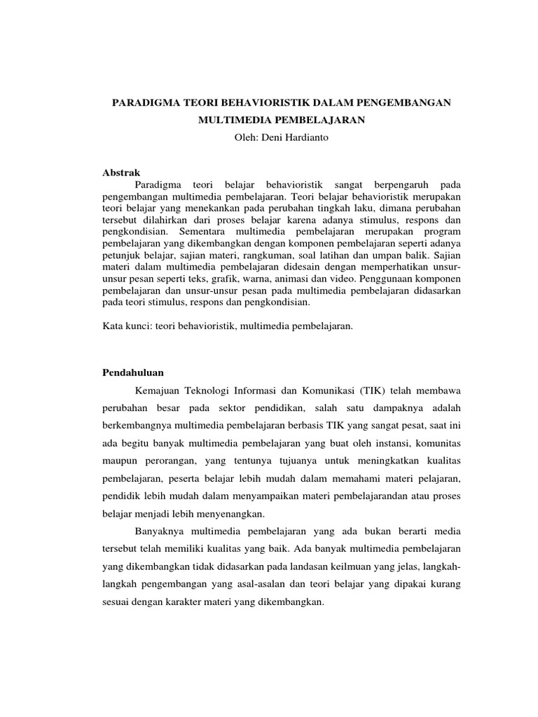23 penerapan teori behavioristik dalam mata pelajaran bahasa indonesia bagi anak sekolah dasar aplikasi teori behavioristik dalam kegiatan pembelajaran tergantung dari beberapa hal seperti.