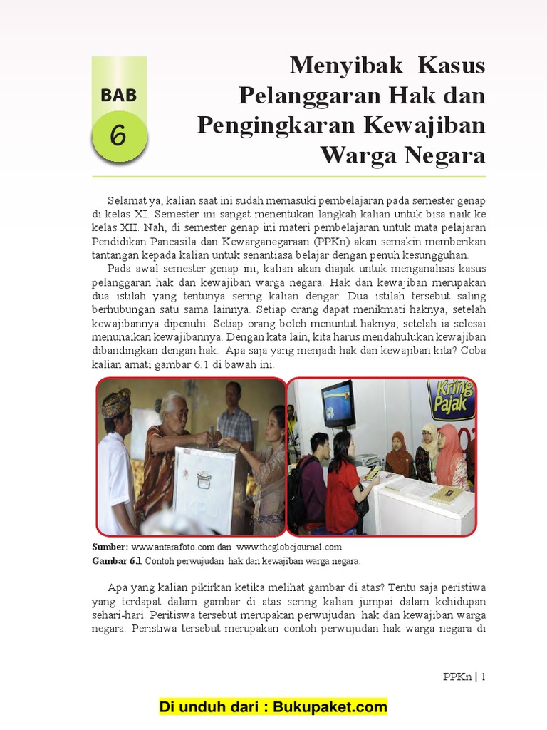 Berbagai kasus pelanggaran hak dan pengingkaran kewajiban warga negara indonesia terus saja terjadi meski negara telah mengantisipasinya dengan berbagai cara. Tidak mendapatkan persamaan hukum 2. Pelanggaran hak dan pengingkaran kewajiban warga negara pelaksanaan hak dan kewajiban yang tidak seimbang dan berat sebelah hanya akan menimbulkan pertikaian konflik permusuhan dan kekerasandalam pelaksaan hak dan kewajiban kita sebagai warga negara tentu saja tidak berjalan mulus masih banyak warga negara yang melakukan pelanggaran hak dan mengingkari kewajibannya sebagai warga negara. Setelah mengetahui apa saja hak sebagai warga negara indonesia kini saatnya kita mengetahui apa saja yang menjadi contoh hak dan kewajiban warga negara yaitu contoh kewajiban kita sebagai warga negara. Setiap warga negara memiliki kewajiban untuk berperan serta dalam membela mempertahankan kedaulatan negara indonesia dari serangan musuh. Menaati hukum yang berlaku b.