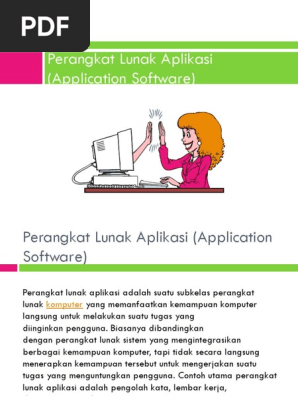 Berikut ini adalah jenis jenis perangkat lunak. Untuk memperjelas pembahasan tentang perangkat lunak aplikasi berikut ini beberapa contoh perangkat lunak aplikasi yang hampir selalu ada di dalam komputer. Perangkat aplikasi biasanya disebut juga dengan program komputer. Perangkat lunak yang digunakan sebagai sistem operasi dalam komputer untuk mengatur sumber daya dari perangkat keras dan perangkat lunak serta memberikan informasi kepada user. Jenis jenis perangkat lunak perangkat lunak aplikasi adalah perangkat lunak yang digunakan untuk membantu aplikasi kebutuhan sehari hari untuk pengguna komputer karena kebutuhan manusia yang banyak program aplikasi yang diciptakan manusia juga banyak hal ini tentu bertujuan untuk mempermudah segala kebutuhan manusia berikut ini beberapa contoh perangkat lunak aplikasi. Dengan semakin banyaknya aplikasi aplikasi khusus ini semakin membuktikan bahwa teknologi komputer dapat digunakan pada banyak bidang.
