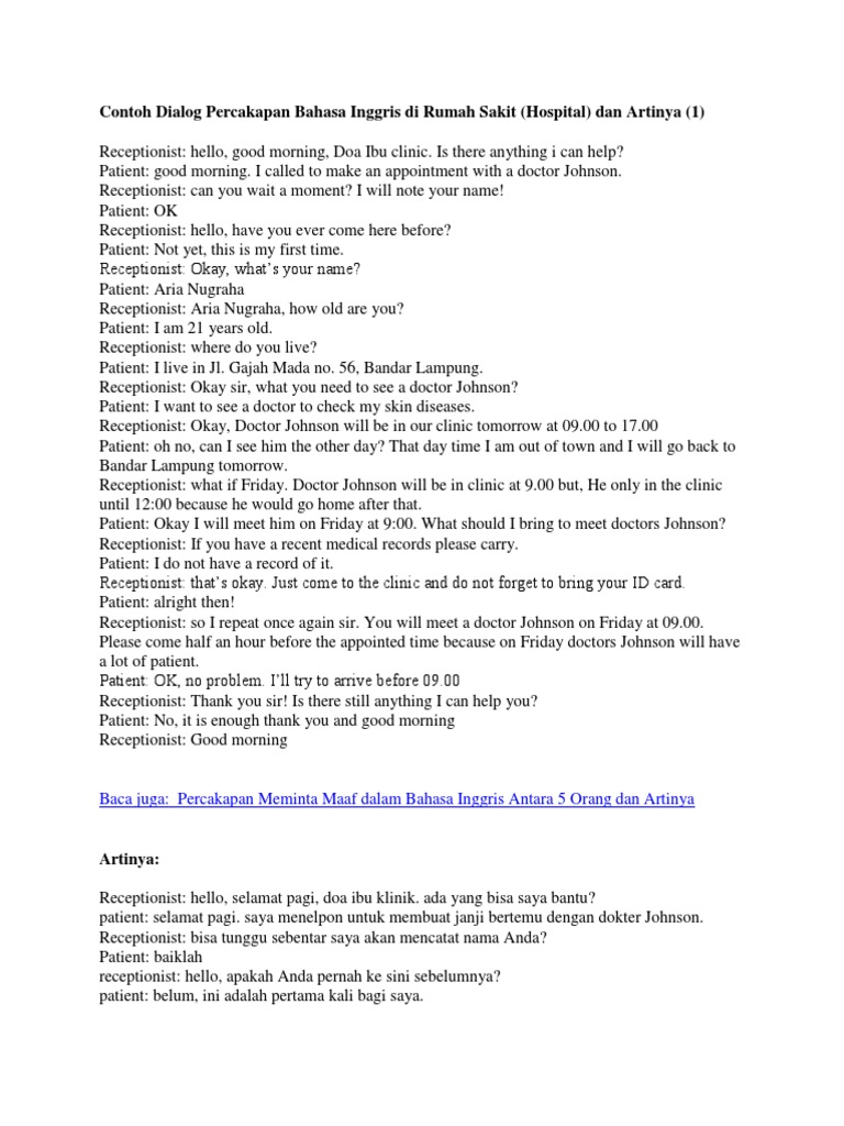Contoh percakapan bahasa inggris dan artinya. Percakapan bahasa inggris dalam belajar bahasa inggris percakapan adalah hal yang sangat mutlak diperlukan karena percakapan adalah proses untuk menyampaikan maksud dan tujuan kita. Dalam belajar bahasa inggris memahami dan menghapal kosakata kata kerja sangat penting karena kata kata kerja. Namun sebelum baca lebih lanjut kamu bisa baca contoh perkenalan bahasa inggris saat interview. Contoh dialog interview kerja dalam bahasa inggris interview kerja adalah salah satu tahap yang paling menegangkan bagi sebagian orang. Kali ini saya memberikan contoh teks perkenalan diri dalam bahasa inggris. Kita sebenarnya sudah belajar bahasa inggris sejak kecil bahkan sekarang anak tk pun sudah ada mulai.