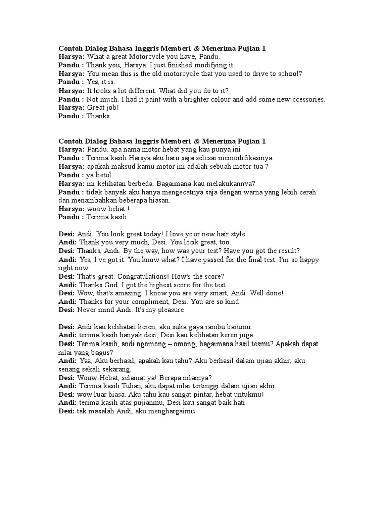 Kali ini saya memberikan contoh teks perkenalan diri dalam bahasa inggris. Namun kita juga perlu mempraktikkan apa yang telah dipelajari melalui percakapan. Contoh dialog bahasa inggris expressing of suggestion. Contoh dialog interview kerja dalam bahasa inggris interview kerja adalah salah satu tahap yang paling menegangkan bagi sebagian orang. Untuk belajar bahasa internasional ini kita tidak hanya belajar menulis kalimat dengan grammar yang benar saja. Untuk memperlancar dalam proses percakapan kita dituntut untuk menguasai banyak vocabulary atau kosakata.