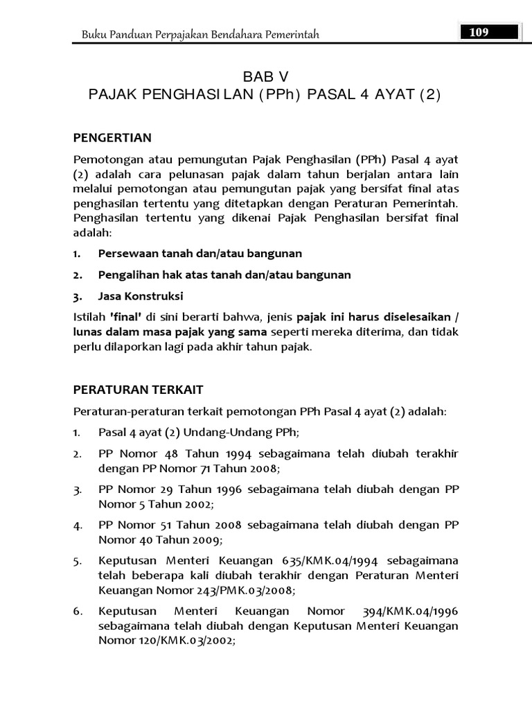 Sedangkan untuk tarif pph pasal 4 ayat 2 ini adalah 10 dari. Pph pasal 4 2 atas persewaan gedung danatau bangunan. Pajak atas persewaan tanah danatau bangunan rafi moreno menyewa rumah milik damas wibowo selama 5 tahun dari tahun desember 2011 sampai dengan desember 2015 sebesar rp350000000 yang dibayar pada awal sewa. Besarnya pemotongan pph pasal 4 ayat 2 atas penghasilan dari usaha jasa konstruksi adalah 3 x rp5000000000 rp150000000. Penghasilan di bawah ini dapat dikenai pph pasal 4 ayat 2 bersifat final. Pengalihan hak atas tanah danatau bangunan.