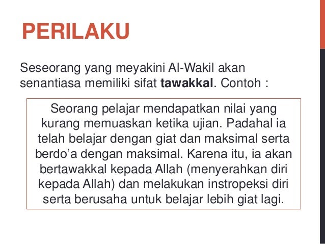 Contoh perilaku asmaul husna dalam kehidupan sehari hari. Katanya berikan contoh perilaku dalam kehidupan sehari hari dari asmaul husna al karim al wakil al matin al jami al adl al akhir. Penerapan asmaul husna dalam kehidupan sehari hari. Unknown 11 november 2013 at 0106. Beberapa contoh perilaku yang sesuai dalam kehidupan sehari hari antara lain. Informasi tentang makna asmaul husna dan 4 contoh penjelasan asmaul husna yaitu al alim al khabir as sami al basir mengacu kepada pelajaran pendidikan agama islam kelas 7 sekolah lanjutan tingkat pertama yang familiar kita kenal dengan sltp smp atau madrasah tsanawiyah alias mts. Dalam menjalani kehidupan sehari hari alangkah baiknya kita mencontoh arti dari sebuah nama asmaul husna jika kita melakukan perilaku perilaku dalam asmaul husna dalam kehidupan sehari hari pasti hidup mendapatkan ketenangan.