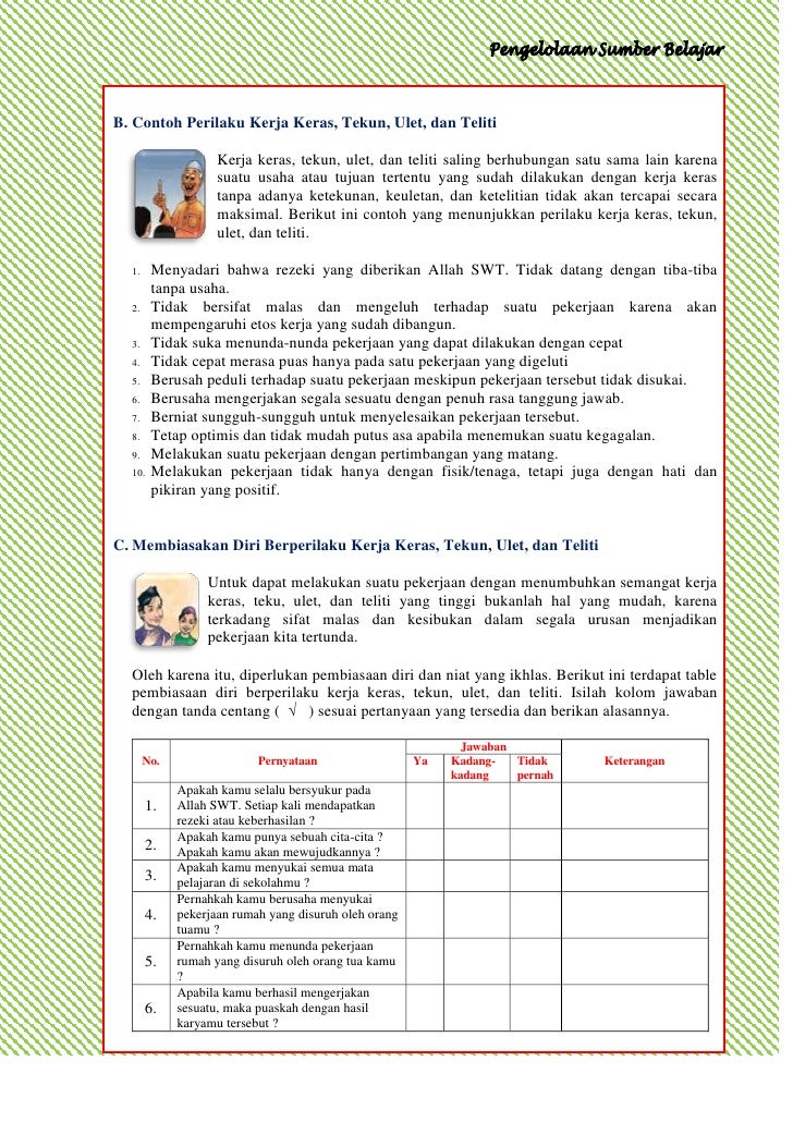 Contoh perilaku kerja keras. Contoh soal kewirausahaan kelas 10 smama dan kunci jawabannya 20192020. Manfaatkan waktu sebaik baiknya jawaban. Pengertian dan contoh perilaku kerja keras tekun ulet dan teliti a. Sekolah ia mengerjakan tugas yang diberikan guru. Contoh perilaku kerja keras tekun ulet dan teliti kerja keras tekun ulet dan teliti saling berhubungan satu sama lain karena suatu usaha atau tujuan tertentu yang sudah dilakukan dengan kerja keras tanpa adanya ketekunan keuletan dan ketelitian tidak akan tercapai secara maksimal. Malam hari ia belajar dan siang hari sepulang.