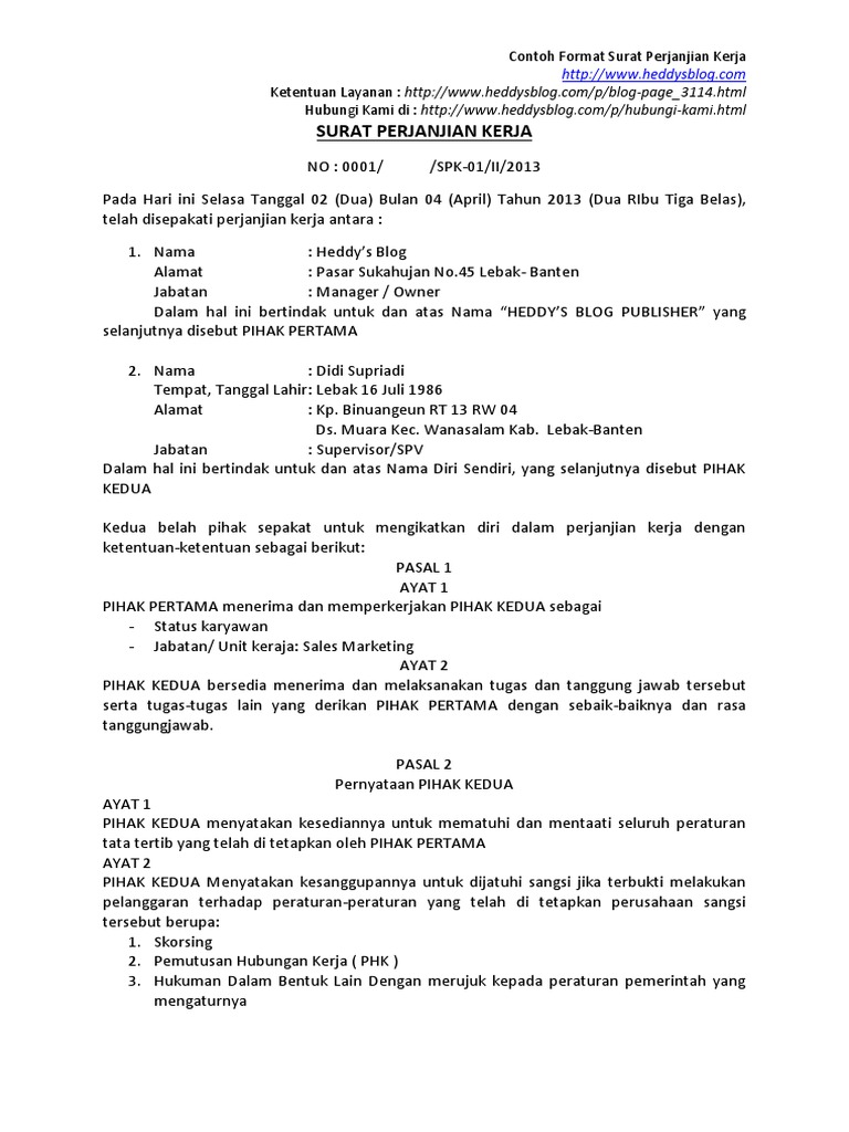 Dalam daftar isi silahkan pilih dan klik contoh surat yang diinginkan anda akan diarahkan ke link untuk mendownload surat tsb. Setiap perusahaan wajib untuk memberikan kontrak kerja di hari pertama calon karyawan bekerja. 214 cibinong jabatan. Pokok nya setiap ada perubahan status kerja karyawan sebaiknya dilakukan permbaruan pada surat perjanjian kerja ini. Sukasenang jaya berkedudukan di jl. Contoh surat perjanjian no.