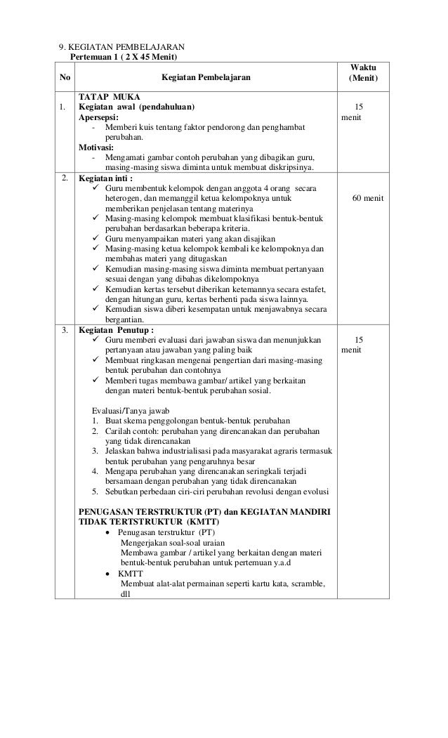Contoh perubahan yang direncanakan. Perubahan bentuk ini adalah perubahan perubahan yang diperkirakan atau sudah direncanakan terlebih dahulu oleh pihak pihak yang akan melakukan perubahan di masyarakat. Perbuahan ini dilakukan oleh pihak pihak yang menginginkan perubahan yang disebut sebagai agent of changeagent of change melakukan perencanaan terlebih dahulu untuk memperhitungkan keberhasilan dari perubahan sosial di dalam masyarakat. Contoh perubahan sosial yang direncanakan contoh perubahan yang direncanakan adalah penggunaan e book elektronik buku sebagai pengganti buku buku pelajaran yang ada di sekolah. Penggunaan e book secara menyeluruh ini mèrupakan alah satu program unggulan pemerintah pusat yang tentunya diharapkan dapat mempermudah peserta didik untuk memahami materi pelajaran yang di dapatkan disekolah. Pihak pihak yang menghendaki suatu perubahan dinamakan agent of change yaitu seseorang atau sekelompok orang yang mendapat kepercayaan dari masyarakat sebagai pemimpin satu atau lebih lembaga lembaga. Perubahan yang direncanakan menekankan pada dua aspek yakni dilakukan secara sengaja dan biasanya memiliki tujuan.