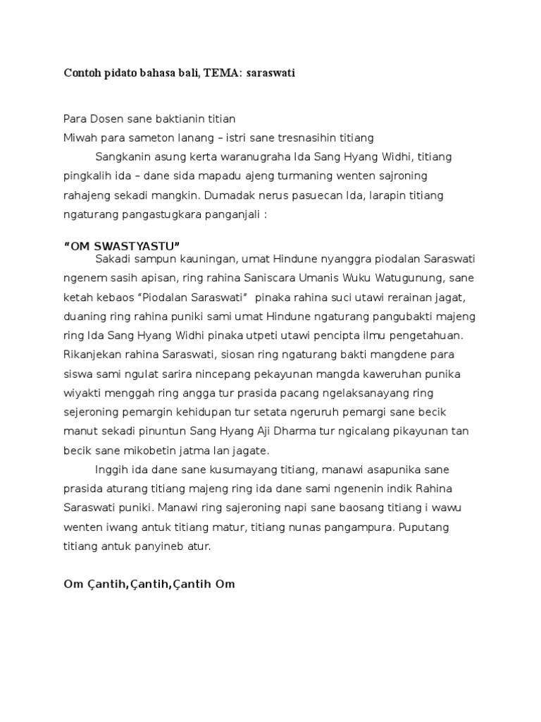 Saya mau copy ya buat tugas ada contoh pidato yang lain gak. Salam bloggers mania dari iputu dirga dan terima kasih. Narkotika atau file word contoh conto pidato pidarta bahasa bas. Bali wisata budaya para darsika miwah uleman sane wangiang titiang. Bapak lan ibu guru sma negeri 1 mengwi sane wangiang titiang. 31 agustus 2018 2254.