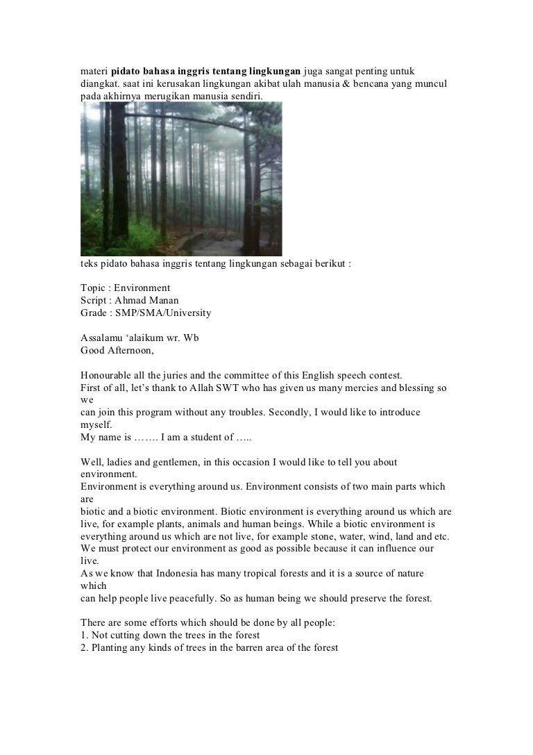 Contoh pidato bahasa inggris tentang lingkungan. Assalamualakum wr wb best wishes for all of. Contoh pidato tentang dampak facebook. 903 am herlambang priyo trapsilo no comments pidato lingkungan hidup. Ahmad manan grade. Demikianlah contoh pidato bahasa inggris singkat tentang lingkungan yang bisa kami berikan. Contoh pidato tentang uks.