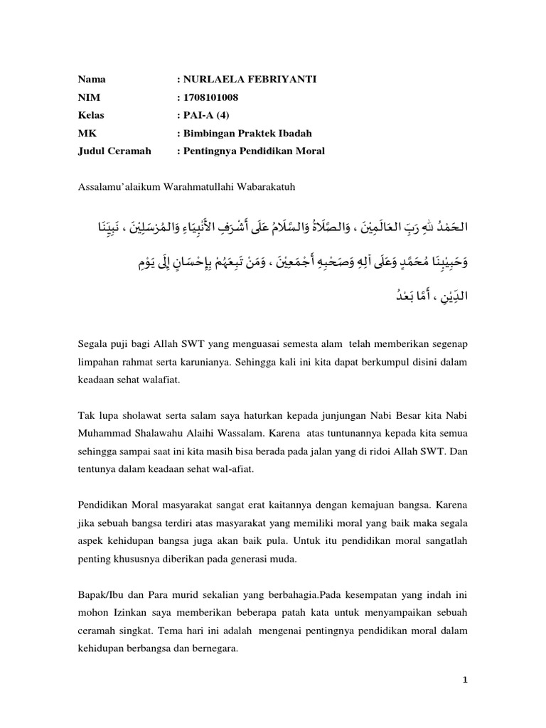 Marilah kita panjatkan puja dan puji syukur kepada allah saw berkat taufiq dan hidayahnya jualah kita dapat berkumpul pada pagi hari yang cerah ini serta masih diberikan kekuatan iman islam dan ihsan dan kesehatan. Contoh pidato tentang pendidikan moral.