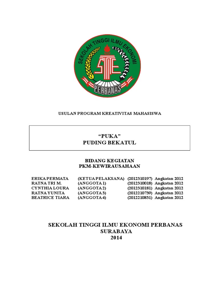 Ahmad ari sasongko 2014005036 2014 hamdan abdul rahman 2014005011 2014 raden suhabno 2014005035 2014 gita fespari 2016007006 2016 uswatun. Contoh proposal kewirausahaan bagi kalian yang mungkin tengah mencari contoh proposal makanan untuk memenuhi tugas mahasiswa ataupun untuk pengajuan proposal usaha pribadi. Puji syukur kehadirat allah swt yang telah melimpahkan taufik serta hidayah nya sehingga kami dapat menulis proposal yang berjudul puding strawberry bagi masyarakat. Ide penulisan pkm ini.