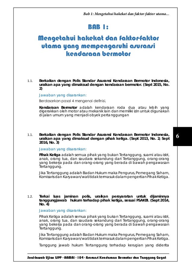 Soal Jawaban Lspp Aamai 104 Asuransi Kendaraan Bermotor Dan