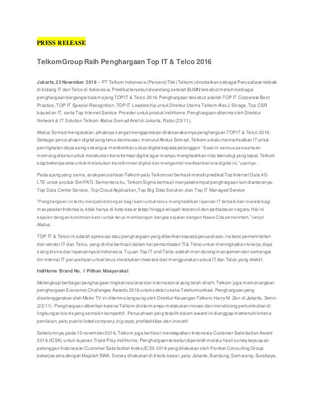 Contoh press release perusahaan. Teknik penulisannya sama dengan penulisan naskah nerita. Press release siaran pers atau rilis adalah informasi biasanya berupa naskah berita yang dibuat oleh public relations pr atau hubungan masyarakat humas suatu organisasi perusahaan atau instansi yang disampaikan kepada media massa untuk dipublikasikan dalam media massa tersebut. Contoh press release apa itu press release. 3 contoh press release kegiatan event dan perusahaan update heri juni 4 2016 0 contoh press release pengertian press realese adalah suatu cara yang digunakan praktisi untuk menyampaikan informasi baik itu berupa kegiatan kebijakan klarifikasi ataupun acara yang dilakukan oleh perusahaan atau organisasi melalui media massa atau website perusahaan. Contoh press release singkat yang akan ditunjukan kepada media. Press release adalah informasi yang dibuat atau disusun oleh public relations pr atau humas sebuah perusahaan organisasi atau instansi untuk surat kabarmedia massa agar disampaikan kepada publik.
