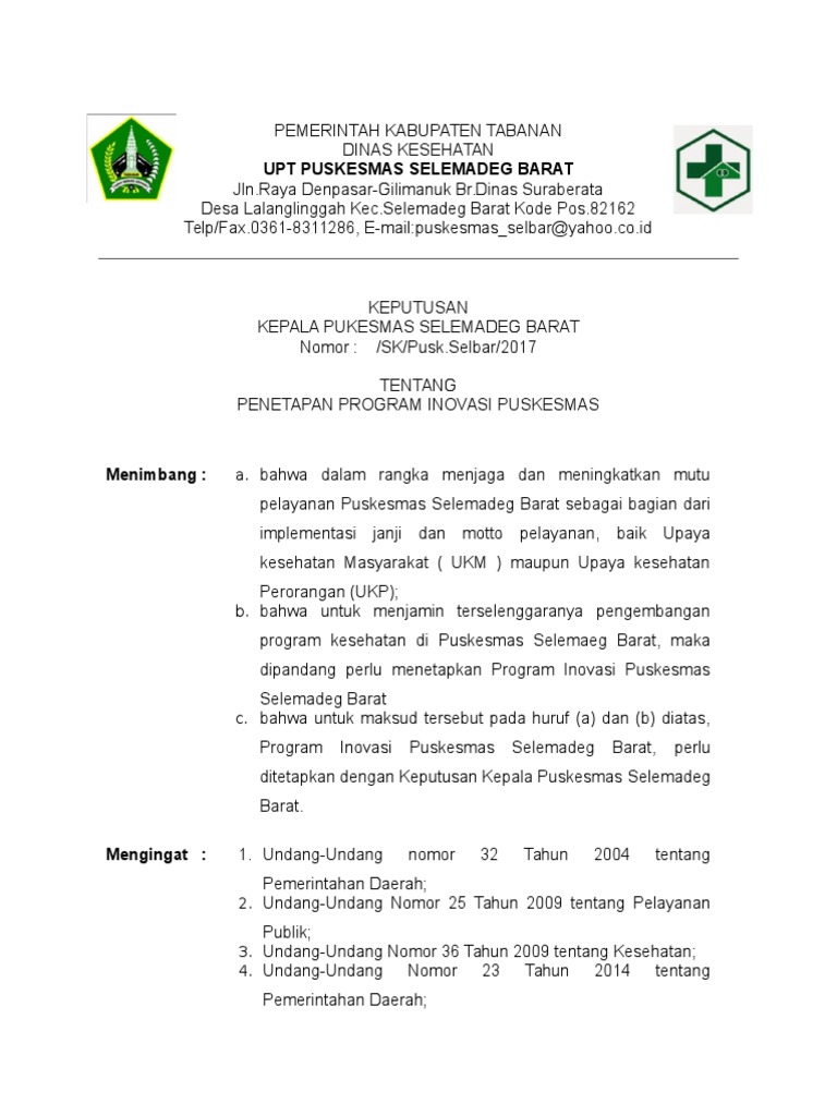 Bantul dinkes mewujudkan layanan prima puskesmas pleret meluncurkan 9 program inovasi kesehatanpuskesmas yang berada di jalan imogiri timur ini terkenal dengan slogannya serasa ces pleng senyum ramah sayang cekatan etis senang prasaja legawa nguwongaken. Maumere menerapkan tiga program inovatif dan meningkatkan kualitas pelayanan kepada pasien menghantarakan pusat kesehatan masyarakat puskesmas lekebai kecamatn mego kabupaten sikka meraih peringkat madya dalam akreditasi yang dilakukan kementerian kesehatan ri pada 2017. Keputusan kepala puskesmas pacet kabupaten mojokerto. 0321691179 kode pos 61374. Fenomena tersebut justru menjadi pemicu kami untuk berinovasi memberikan solusi efektif namun tetap sederhana dalam pengaplikasian.