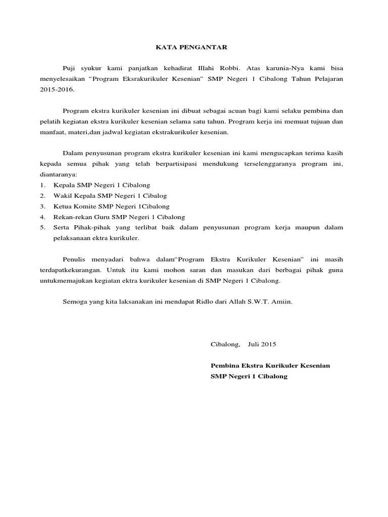 Contoh program kerja ekstrakurikuler. Contoh program kerja ekstrakurikuler olahraga bola voli untuk smp ini mungkin bermanfaat juga bagi anda yang membutuhkan referensi lainnya yang berhubungan dengan contoh program kerja ekstrakurikuler olahraga seperti program kerja ekstrakurikuler sepak bola contoh program kerja ekstrakurikuler futsal program ekskul bola voli sd contoh proposal kegiatan ekstrakurikuler olahraga contoh. Dari format contoh yang kami bagikan disini dibuat dengan menggunakan file berupa microsoft word sehingga memudahkan bapak ibu guru dalam melakukan pengeditan sesuai dengan kebutuhan serta program esktrakurikuler yang akan diselenggarakan dari kegiatan kerja ekstrakurikuler bulu tangkis tersebut pun memiliki penyusunan. Contoh program kerja kegiatan ekstrakurikuler pramuka ini masih sangat sederhana dan tentunya harus lebih dikembangkan. Bab i pendahuluan a. Academiaedu is a platform for academics to share research papers. Wadah pengembangan minat dan bakat.